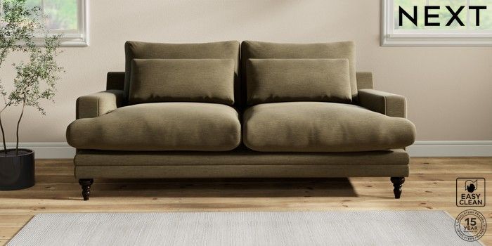 6.12.1 Buy Hutton Deep Relaxed Sit 3 Seater Sofa Fine Chenille Easy Clean Dark Moss Green Country Turned - Dark from the Next UK online shop Click here to use our accessible website