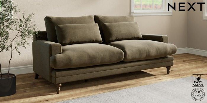 7.0.3 Buy Hutton Deep Relaxed Sit 3 Seater Sofa Fine Chenille Easy Clean Dark Moss Green Country Turned - Mid from the Next UK online shop Click here to use our accessible website