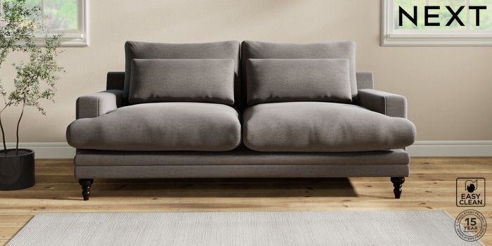 6.12.1 Buy Hutton Deep Relaxed Sit 3 Seater Sofa Fine Chenille Easy Clean Dark Smoke Grey Country Turned - Dark from the Next UK online shop Click here to use our accessible website