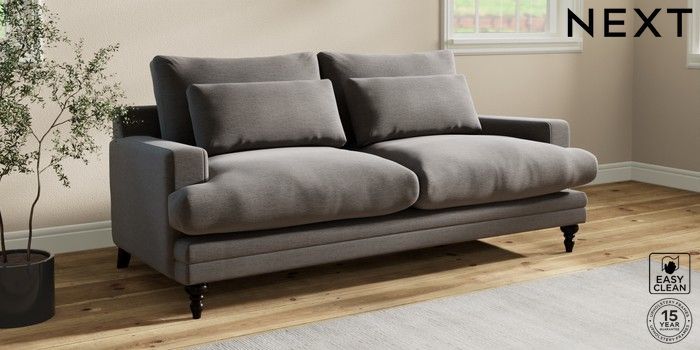 7.0.3 Buy Hutton Deep Relaxed Sit 3 Seater Sofa Fine Chenille Easy Clean Dark Smoke Grey Country Turned - Dark from the Next UK online shop Click here to use our accessible website