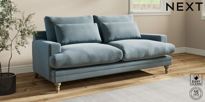 7.0.3 Buy Hutton Deep Relaxed Sit 3 Seater Sofa Fine Chenille Easy Clean Mid Blue Country Turned - Light from the Next UK online shop Click here to use our accessible website
