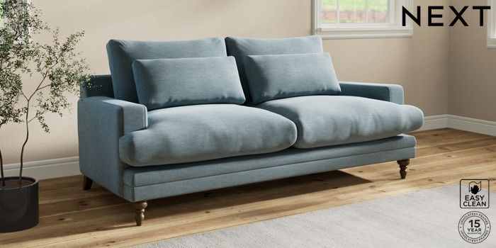 7.0.3 Buy Hutton Deep Relaxed Sit 3 Seater Sofa Fine Chenille Easy Clean Mid Blue Country Turned - Mid from the Next UK online shop Click here to use our accessible website