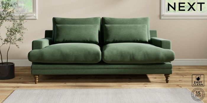 6.12.1 Buy Hutton Deep Relaxed Sit 3 Seater Sofa Fine Chenille Easy Clean Mid Khaki Green Country Turned - Mid from the Next UK online shop Click here to use our accessible website