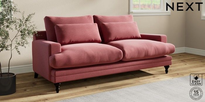 7.0.3 Buy Hutton Deep Relaxed Sit 3 Seater Sofa Fine Chenille Easy Clean Mid Pink Country Turned - Dark from the Next UK online shop Click here to use our accessible website