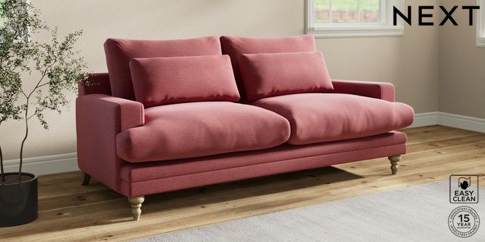 7.0.3 Buy Hutton Deep Relaxed Sit 3 Seater Sofa Fine Chenille Easy Clean Mid Pink Country Turned - Light from the Next UK online shop Click here to use our accessible website