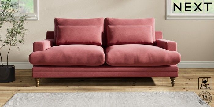 6.12.1 Buy Hutton Deep Relaxed Sit 3 Seater Sofa Fine Chenille Easy Clean Mid Pink Country Turned - Mid from the Next UK online shop Click here to use our accessible website