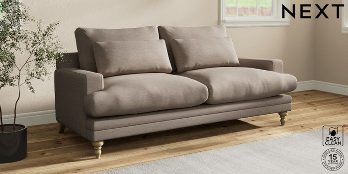 7.0.3 Buy Hutton Deep Relaxed Sit 3 Seater Sofa Fine Chenille Easy Clean Mid Taupe Brown Country Turned - Light from the Next UK online shop Click here to use our accessible website