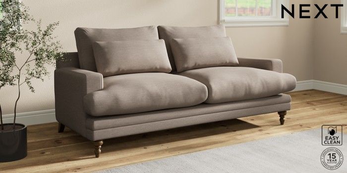 7.0.3 Buy Hutton Deep Relaxed Sit 3 Seater Sofa Fine Chenille Easy Clean Mid Taupe Brown Country Turned - Mid from the Next UK online shop Click here to use our accessible website