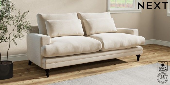 7.0.3 Buy Hutton Deep Relaxed Sit 3 Seater Sofa Fine Chenille Easy Clean Oyster Country Turned - Dark from the Next UK online shop Click here to use our accessible website
