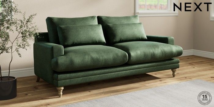 7.0.3 Buy Hutton Deep Relaxed Sit 3 Seater Sofa Luxe Chenille Dark Green Country Turned - Light from the Next UK online shop Click here to use our accessible website