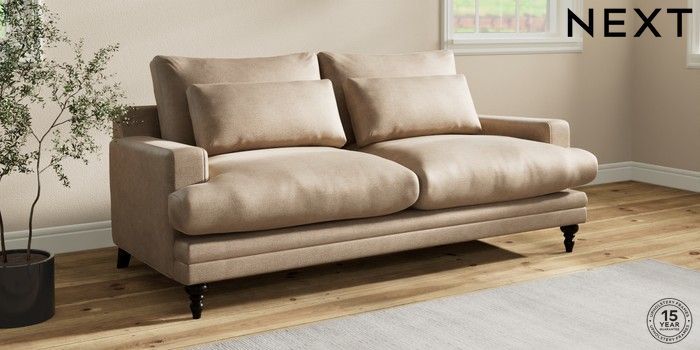 7.0.3 Buy Hutton Deep Relaxed Sit 3 Seater Sofa Luxe Chenille Mid Camel Beige Country Turned - Dark from the Next UK online shop Click here to use our accessible website