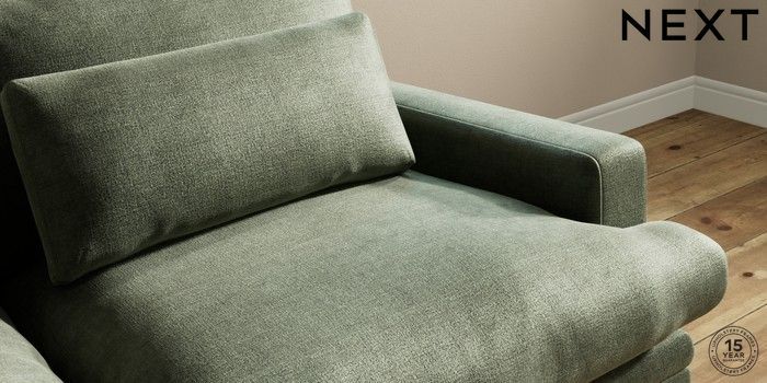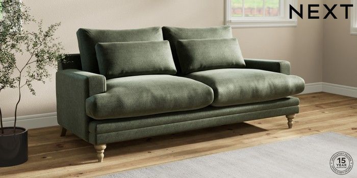 7.0.3 Buy Hutton Deep Relaxed Sit 3 Seater Sofa Luxe Chenille Mid Green Country Turned - Light from the Next UK online shop Click here to use our accessible website