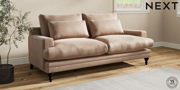 7.0.3 Buy Hutton Deep Relaxed Sit 3 Seater Sofa Luxe Chenille Mid Natural Country Turned - Dark from the Next UK online shop Click here to use our accessible website