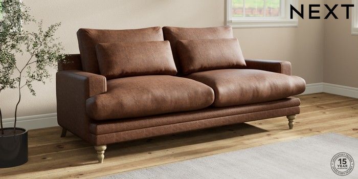 7.0.3 Buy Hutton Deep Relaxed Sit 3 Seater Sofa Monza Faux Leather Easy Clean Chestnut Brown Country Turned - Light from the Next UK online shop Click here to use our accessible website