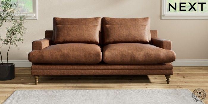 6.12.1 Buy Hutton Deep Relaxed Sit 3 Seater Sofa Monza Faux Leather Easy Clean Chestnut Brown Country Turned - Mid from the Next UK online shop Click here to use our accessible website
