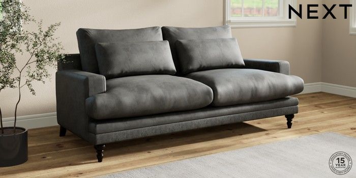 7.0.3 Buy Hutton Deep Relaxed Sit 3 Seater Sofa Monza Faux Leather Easy Clean Dark Grey Country Turned - Dark from the Next UK online shop Click here to use our accessible website