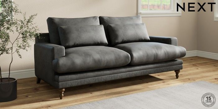 7.0.3 Buy Hutton Deep Relaxed Sit 3 Seater Sofa Monza Faux Leather Easy Clean Dark Grey Country Turned - Mid from the Next UK online shop Click here to use our accessible website