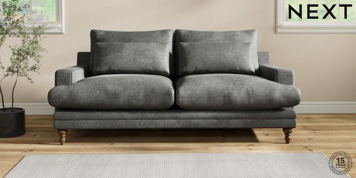 6.12.1 Buy Hutton Deep Relaxed Sit 3 Seater Sofa Plush Chenille Dark Grey Country Turned - Mid from the Next UK online shop Click here to use our accessible website