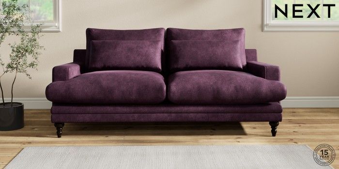 6.12.1 Buy Hutton Deep Relaxed Sit 3 Seater Sofa Plush Chenille Dark Plum Purple Country Turned - Dark from the Next UK online shop Click here to use our accessible website