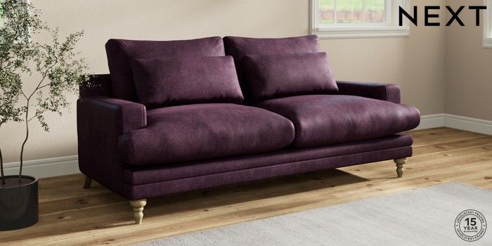 7.0.3 Buy Hutton Deep Relaxed Sit 3 Seater Sofa Plush Chenille Dark Plum Purple Country Turned - Light from the Next UK online shop Click here to use our accessible website
