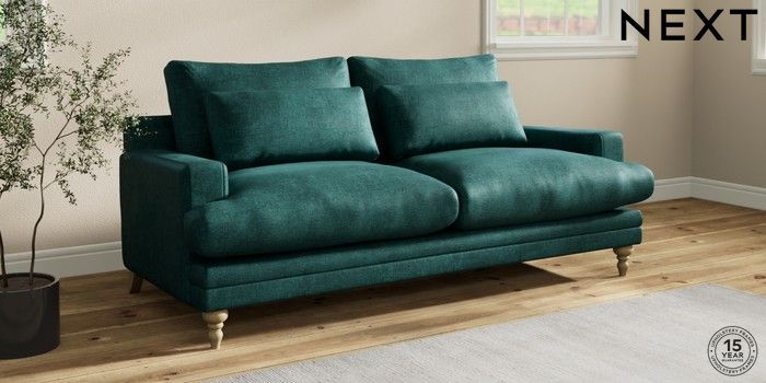 7.0.3 Buy Hutton Deep Relaxed Sit 3 Seater Sofa Plush Chenille Dark Teal Green Country Turned - Light from the Next UK online shop Click here to use our accessible website