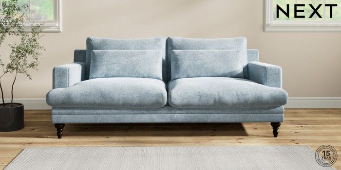 7.2.6 Buy Hutton Deep Relaxed Sit 3 Seater Sofa Plush Chenille Light Blue Country Turned - Dark from the Next UK online shop Click here to use our accessible website