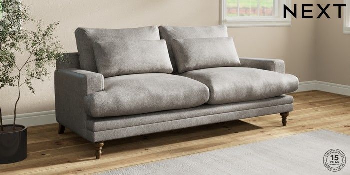 7.0.3 Buy Hutton Deep Relaxed Sit 3 Seater Sofa Plush Chenille Light Grey Country Turned - Mid from the Next UK online shop Click here to use our accessible website