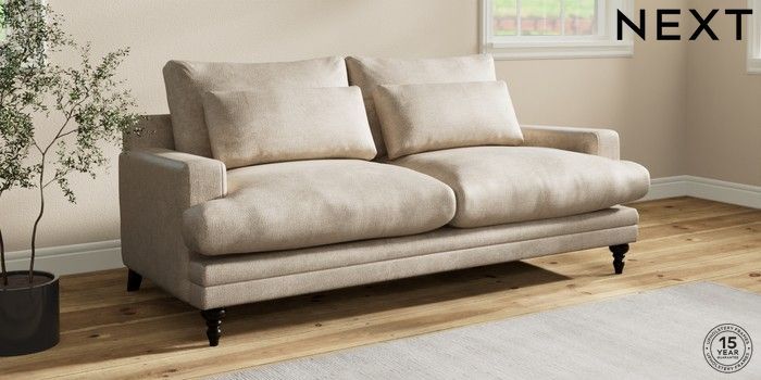 7.0.3 Buy Hutton Deep Relaxed Sit 3 Seater Sofa Plush Chenille Light Natural Country Turned - Dark from the Next UK online shop Click here to use our accessible website