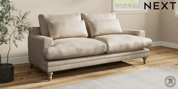7.0.3 Buy Hutton Deep Relaxed Sit 3 Seater Sofa Plush Chenille Light Natural Country Turned - Light from the Next UK online shop Click here to use our accessible website