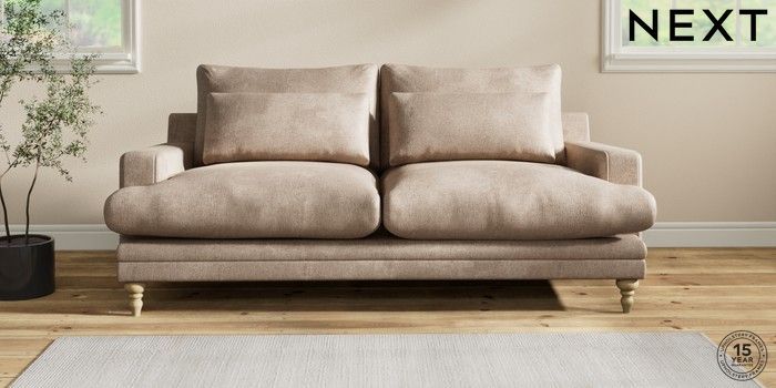6.12.1 Buy Hutton Deep Relaxed Sit 3 Seater Sofa Plush Chenille Mid Natural Country Turned - Light from the Next UK online shop Click here to use our accessible website