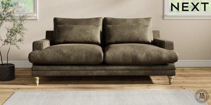 6.12.1 Buy Hutton Deep Relaxed Sit 3 Seater Sofa Plush Chenille Moss Green Country Turned - Light from the Next UK online shop Click here to use our accessible website