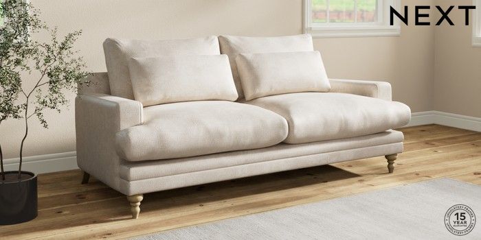 7.0.3 Buy Hutton Deep Relaxed Sit 3 Seater Sofa Plush Chenille Oyster Country Turned - Light from the Next UK online shop Click here to use our accessible website