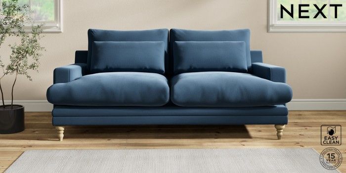6.12.1 Buy Hutton Deep Relaxed Sit 3 Seater Sofa Plush Velvet Easy Clean Airforce Blue Country Turned - Light from the Next UK online shop Click here to use our accessible website