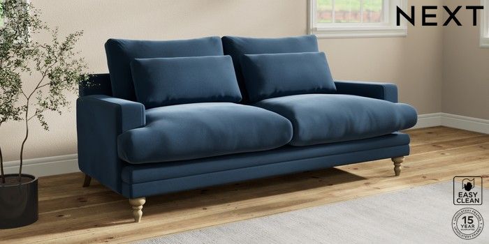 7.0.3 Buy Hutton Deep Relaxed Sit 3 Seater Sofa Plush Velvet Easy Clean Airforce Blue Country Turned - Light from the Next UK online shop Click here to use our accessible website