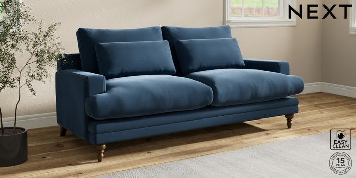 7.0.3 Buy Hutton Deep Relaxed Sit 3 Seater Sofa Plush Velvet Easy Clean Airforce Blue Country Turned - Mid from the Next UK online shop Click here to use our accessible website