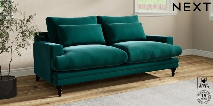7.0.3 Buy Hutton Deep Relaxed Sit 3 Seater Sofa Plush Velvet Easy Clean Juniper Green Country Turned - Dark from the Next UK online shop Click here to use our accessible website