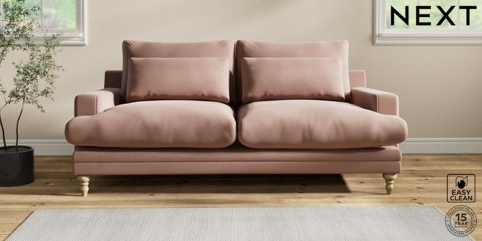 6.12.1 Buy Hutton Deep Relaxed Sit 3 Seater Sofa Plush Velvet Easy Clean Mid Natural Country Turned - Light from the Next UK online shop Click here to use our accessible website