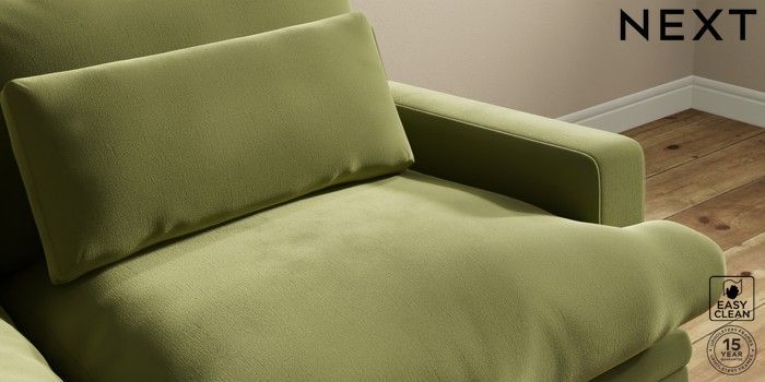 7.0.3 Buy Hutton Deep Relaxed Sit 3 Seater Sofa Plush Velvet Easy Clean Mid Olive Green Country Turned - Dark from the Next UK online shop Click here to use our accessible website