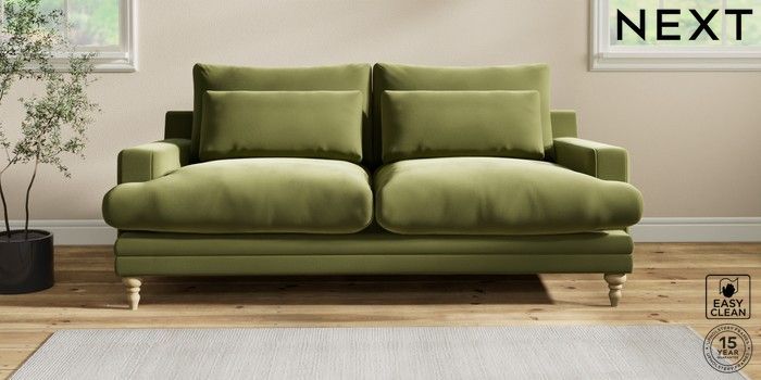 6.12.1 Buy Hutton Deep Relaxed Sit 3 Seater Sofa Plush Velvet Easy Clean Mid Olive Green Country Turned - Light from the Next UK online shop Click here to use our accessible website