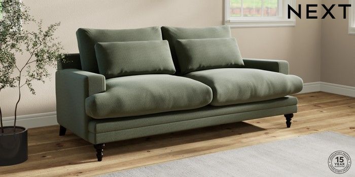 7.0.3 Buy Hutton Deep Relaxed Sit 3 Seater Sofa Relaxed Linen Look Dark Green Country Turned - Dark from the Next UK online shop Click here to use our accessible website