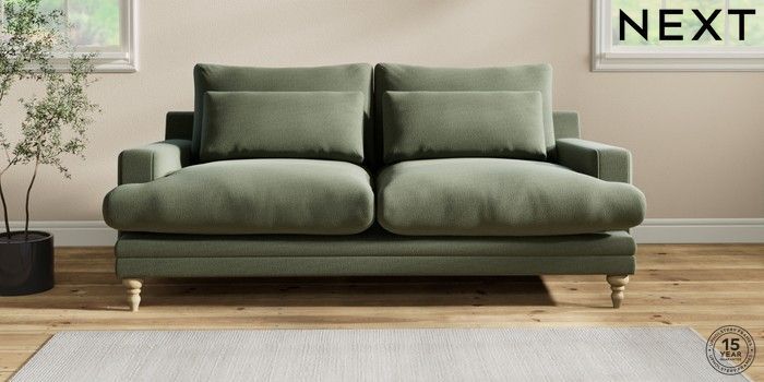 6.12.1 Buy Hutton Deep Relaxed Sit 3 Seater Sofa Relaxed Linen Look Dark Green Country Turned - Light from the Next UK online shop Click here to use our accessible website