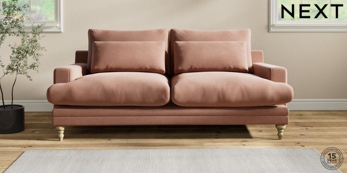 6.12.1 Buy Hutton Deep Relaxed Sit 3 Seater Sofa Relaxed Linen Look Light Rust Brown Country Turned - Light from the Next UK online shop Click here to use our accessible website