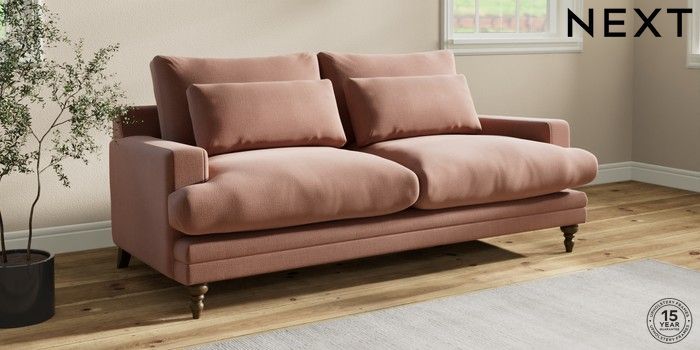 7.0.3 Buy Hutton Deep Relaxed Sit 3 Seater Sofa Relaxed Linen Look Light Rust Brown Country Turned - Mid from the Next UK online shop Click here to use our accessible website