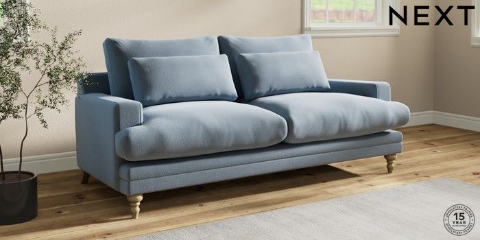 7.0.3 Buy Hutton Deep Relaxed Sit 3 Seater Sofa Relaxed Linen Look Mid Blue Country Turned - Light from the Next UK online shop Click here to use our accessible website