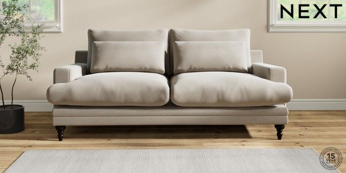 6.12.1 Buy Hutton Deep Relaxed Sit 3 Seater Sofa Ripple Chenille Light Natural Country Turned - Dark from the Next UK online shop Click here to use our accessible website