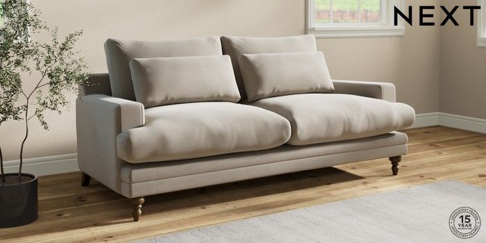 7.0.3 Buy Hutton Deep Relaxed Sit 3 Seater Sofa Ripple Chenille Light Natural Country Turned - Mid from the Next UK online shop Click here to use our accessible website
