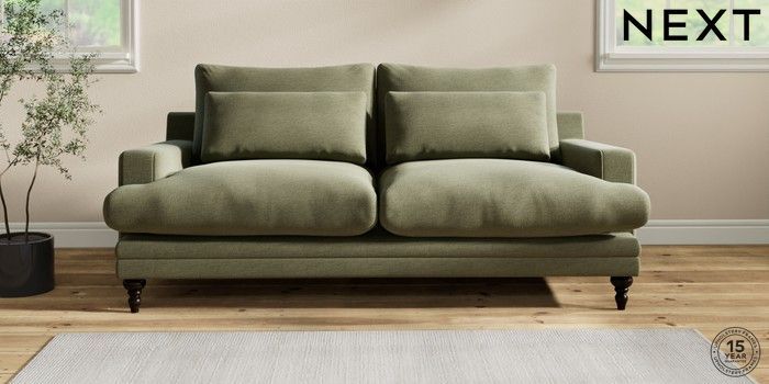 6.12.1 Buy Hutton Deep Relaxed Sit 3 Seater Sofa Ripple Chenille Mid Moss Green Country Turned - Dark from the Next UK online shop Click here to use our accessible website