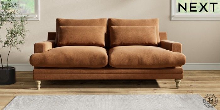 6.12.1 Buy Hutton Deep Relaxed Sit 3 Seater Sofa Ripple Chenille Mid Rust Brown Country Turned - Light from the Next UK online shop Click here to use our accessible website
