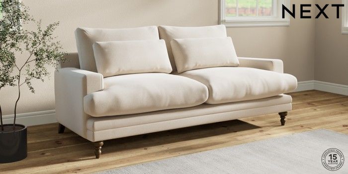 7.0.3 Buy Hutton Deep Relaxed Sit 3 Seater Sofa Studio Chenille Oyster Country Turned - Mid from the Next UK online shop Click here to use our accessible website