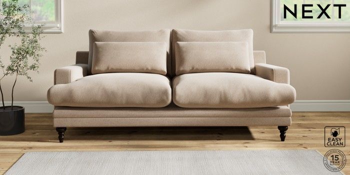 6.12.1 Buy Hutton Deep Relaxed Sit 3 Seater Sofa Tweedy Blend Easy Clean Light Dove Natural Country Turned - Dark from the Next UK online shop Click here to use our accessible website